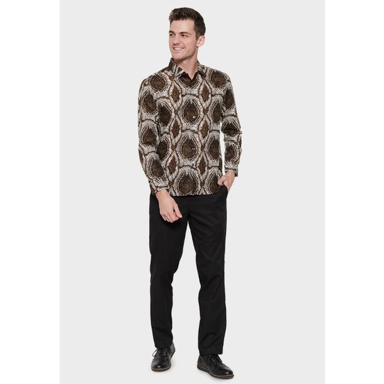 Brown Fashion Kemeja Batik Slim Fit Longsleeve Pria - Kemeja batik modern untuk casual dan formal look - Multiwarna